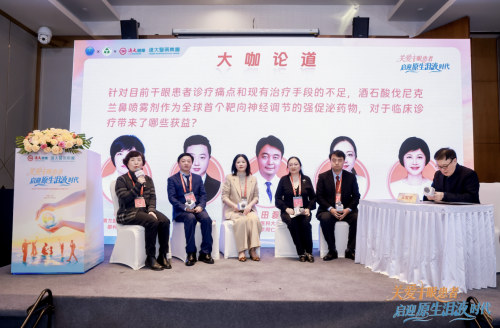 启动仪式后,学术交流环节亮点纷呈。浙江大学附属第二医院晋秀明教授以扎实的临床证据,重点解读了该鼻喷雾剂在精准促泌、速效抗炎方面的长期获益。随后首都医科大学附属北京同仁医院接英教授系统剖析了干眼治疗从“补水”到“生水”的范式转变,深入阐释了酒石酸伐尼克兰鼻喷雾剂通过神经刺激激活泪液分泌的创新机制。中山大学附属第一医院万鹏霞教授则围绕《问渠那得清如许?为有源头活水来》这一主题,为临床实践提供可借鉴的思路与经验。在特别设置的“大咖论道”中,十余位眼科权威专家围绕诊疗痛点与新方案落地等议题展开深入探讨,为规范干眼诊疗、革新治疗观念提供了丰富的新思路。